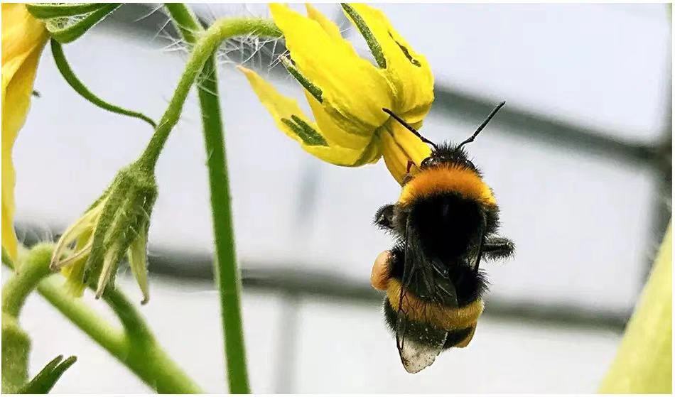 種植過程中,采用熊蜂授粉以及其他生物防治技術來保證座果率和減少病蟲害,番茄生產全程不使用任何農藥。