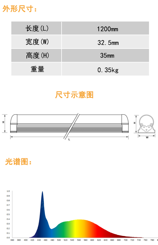 ● 高質量的鋁制外殼,無需附加散熱裝置 ● 100-240V高效內置驅動 ● 120°光束角分布 ● 雛菊鏈連接 ● 有CE/ROHS認證,壽命達50000小時 ● 光譜類型:全光譜