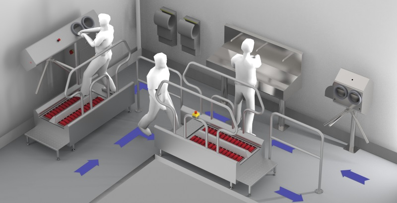 對于鞋底,與手部相同,首先需要清潔,然后再消毒。 當有人在單元的刷毛上行走時,會清潔鞋子。