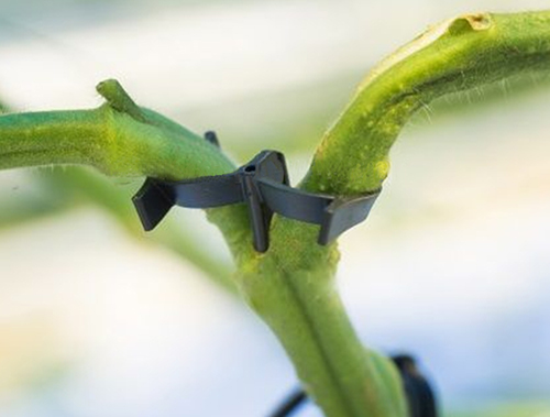 在番茄種植初期,幼苗非常脆弱,容易折斷。 隨著植株生長(zhǎng)加快,果實(shí)重量快速增加,番茄幼苗非常容易因果實(shí)的重量而撕裂。一旦發(fā)生,會(huì)使得番茄果實(shí)質(zhì)量大打折扣。為了避免這樣的情況發(fā)生,提高番茄的質(zhì)量,保證產(chǎn)量,必須在適當(dāng)?shù)臅r(shí)候?qū)Ψ训闹仓赀M(jìn)行額外的保護(hù)和支撐。這是一個(gè)由聚丙烯制成的雙鉤夾,它的節(jié)點(diǎn)可提供額外支撐以防止損壞。由于雙鉤夾的巧妙設(shè)計(jì),它可以快速簡(jiǎn)單地放置,而不會(huì)對(duì)番茄植株造成損害。